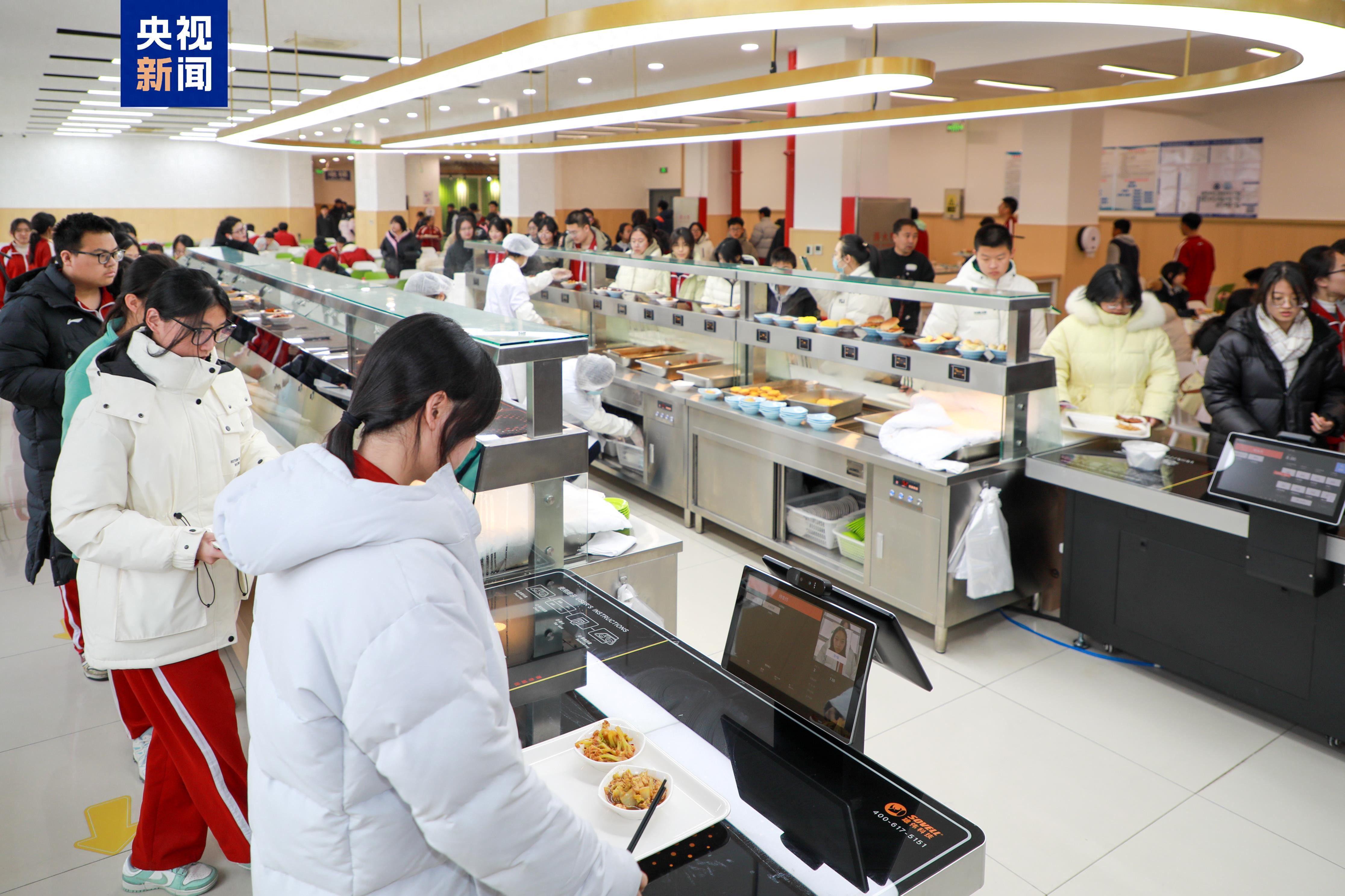 学生刷脸就能打到自己喜欢的饭菜,系统还能根据孩子的年龄、身高、体重推荐营养搭配。