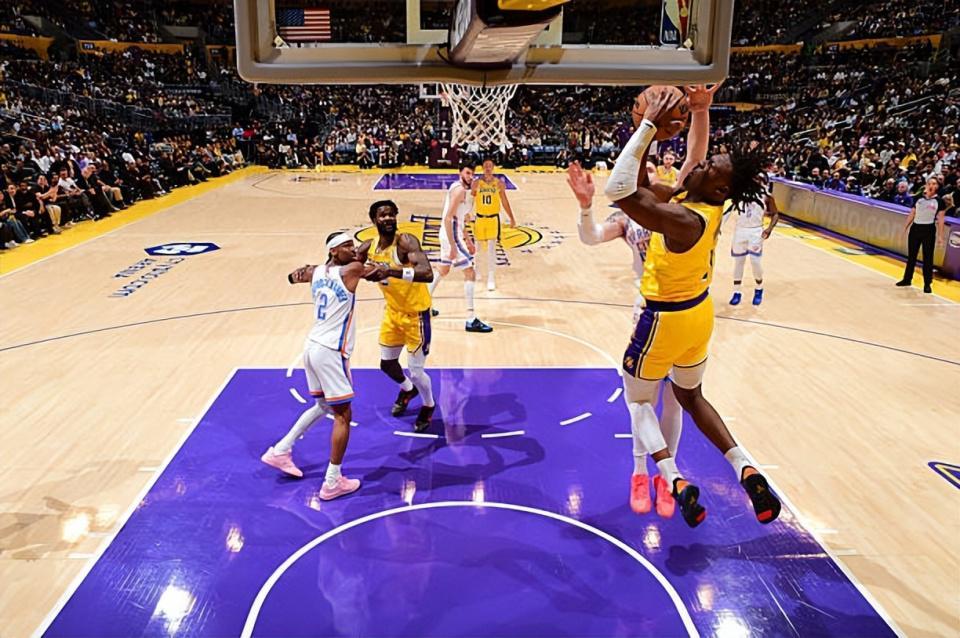 本场比赛中,湖人虽然遭遇了一场惨败,但是球队的替补侧翼新秀阿杜-蒂罗(Adou Thiero)的表现还是相当不错。蒂罗全场出场20分39秒,投篮4中2,三分线外2中1,罚球10中5,得到了10分4篮板2助攻1抢断的数据,还有2次失误,正负值为-15。蒂罗在进攻端展现出了很强的冲击力和爆发力,得到了不少分数。不仅如此,他也命中了一记三分,起到了一定的效果。如果他的罚球能力能够更加出色一些,那么他也有机会得到更多的分数。蒂罗在防守端其实也是具备一定的实力的,他也是有能力在防守端发挥出一定的作用,他也能够利用自己在身体天赋和运动能力方面的优势给对手制造一定的威胁的。至少在本场比赛中,蒂罗也是发挥出自己的特点了,他的表现也是具备一定的亮点的。